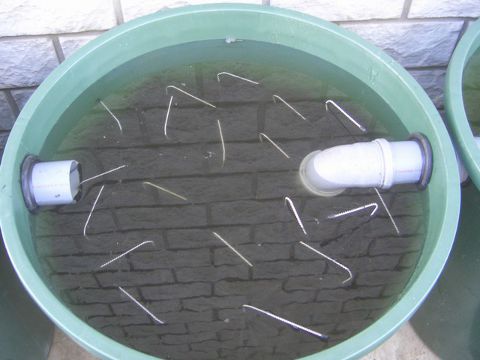 Dazu habe ich einen weiteren Boden in der Tonne eingebracht. Ein paar